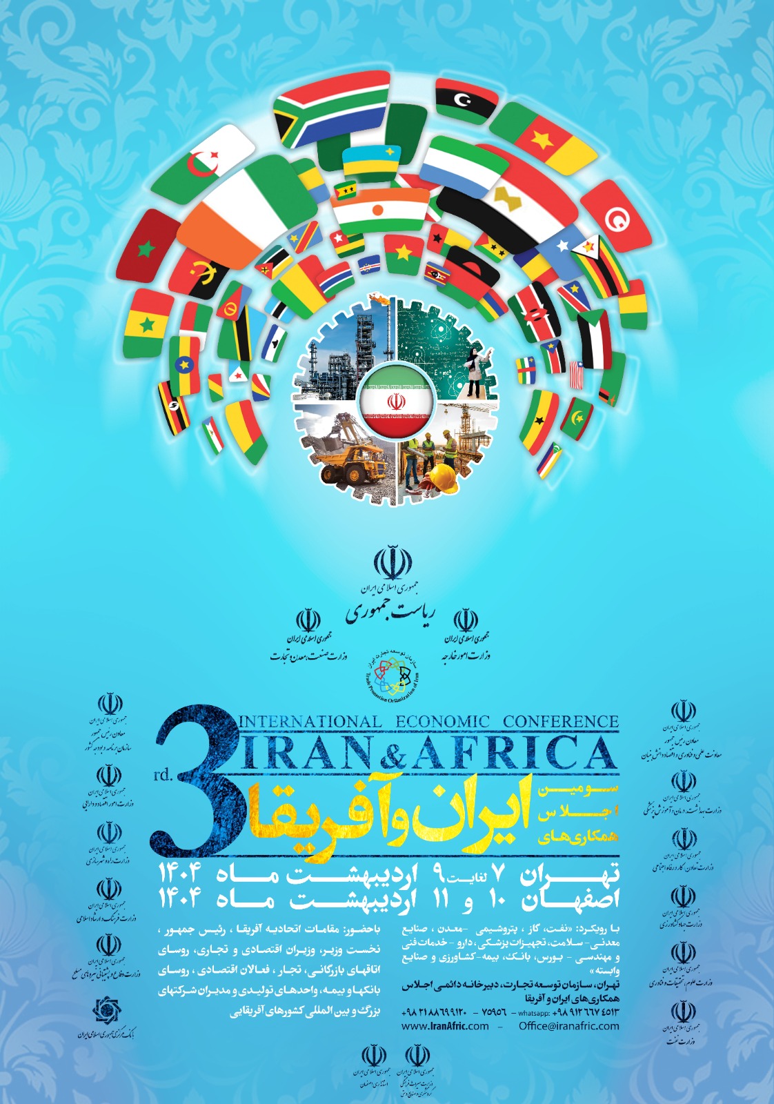 سومین کنفرانس همکاریهای اقتصادی ایران و آفریقا در تاریخ ۷ لغایت 11 اردیبهشت 1404 در تهران برگزار میشود. این رویداد با حضور مقامات عالی رتبه از هر دو بخش دولتی و خصوصی از سراسر قاره آفریقا برگزار میشود.