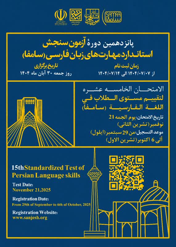 اطلاعیه برگزاری پانزدهمین دوره آزمون سنجش استاندارد مهارت های زبان فارسی (سامفا)